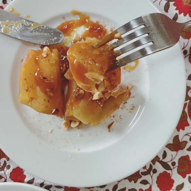 アルミホイルに包みじっくり焼いた林檎の香り、甘さ、柔らかさを味わって下さい。
