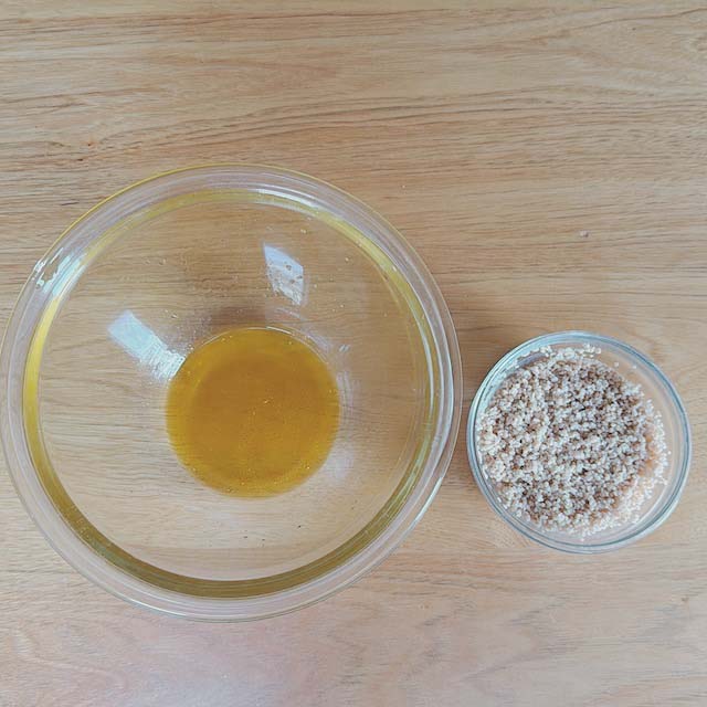 - 6.大きめのボウルにバルサミコ酢と塩を入れ混ぜて溶かす。