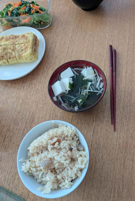 料理は茶碗蒸しと高野豆腐煮、お稲荷さんを作りました。