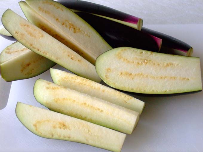 なすはヘタを落とし、縦六等分に切る。 |