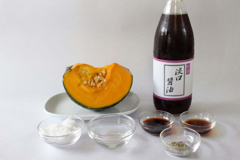 竹串がようやく通る柔らかさになったら砂糖を加え3分程煮る、続いて淡口醤油、濃口醤油を加え、再び落し蓋をし、かぼちゃが動かない位のごく弱火の火加減で5分ほど煮含める。 |