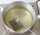 鍋に水2カップを入れて火にかけ、沸騰したらだしパックを入れて5分程煮出し、ギュッと絞って取り出し冷ましておく。 だいたい300mlくらいになります。 |