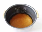 炊飯器に米を入れ、冷めた出汁を加え、次に調味料を加え、足りなければ水を加えて炊飯器の目盛2合にあわせる。 |