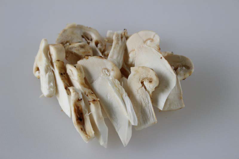 しいたけは5mm厚さの薄切り、ぶなしめじは石づきを切り落としばらばらに分ける。 |