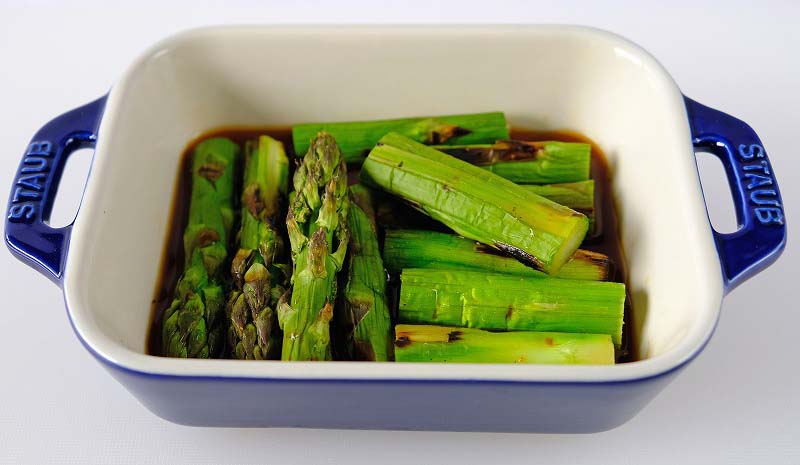 アスパラガスが焼けたら食べやすい長さに切り、1の器に漬ける。 |